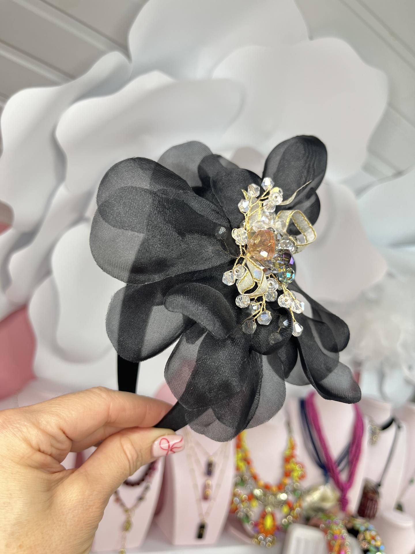 Oferujemy ekskluzywną opaskę do włosów z fasetowanymi kamieniami w elegsnckiej kolorystyce, którą wyróżnia wyjątkowe wykonanie i przesadna wręcz dbałość o szczegóły.
